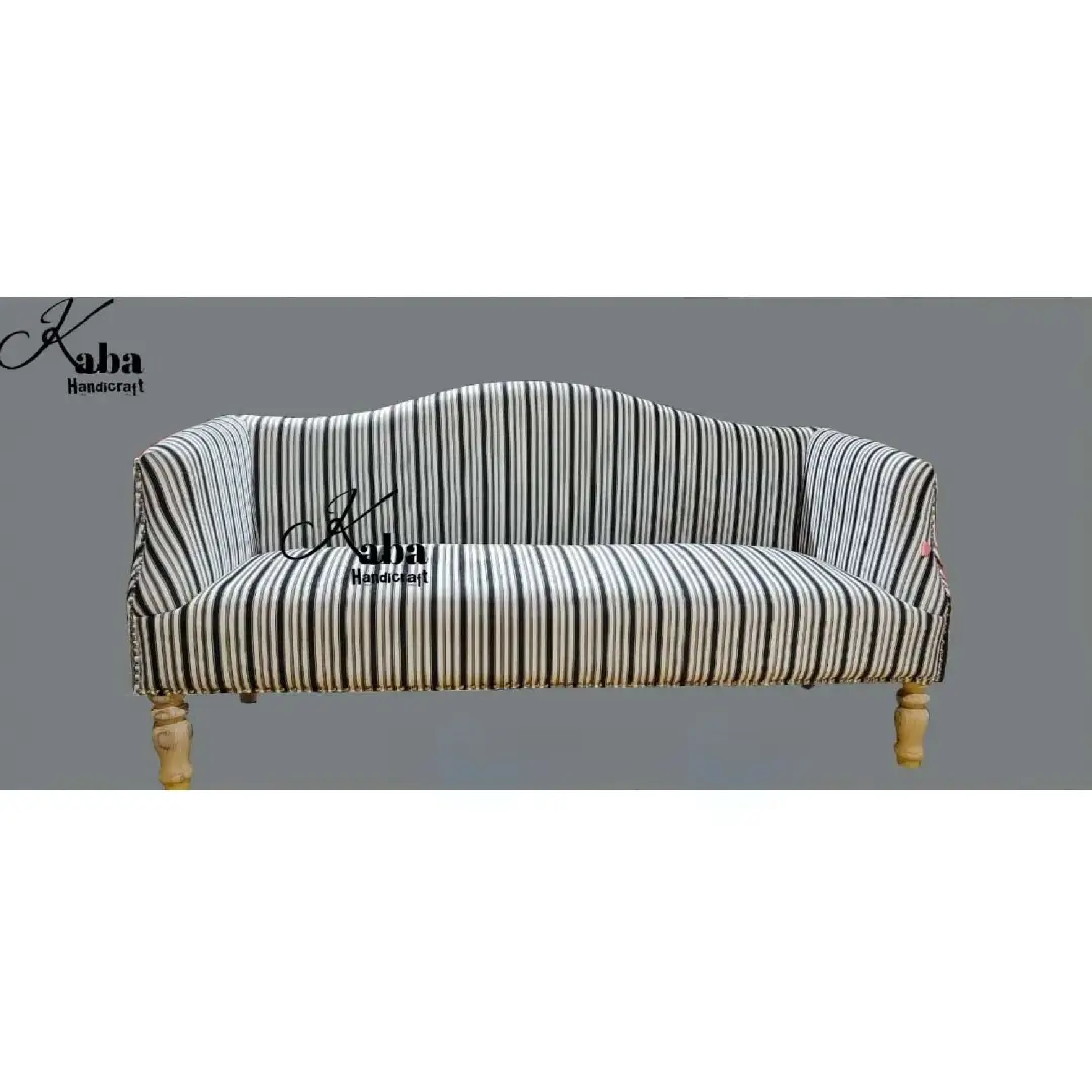 The Black & White Striped Sofa is a timeless piece with a balanced blend of traditional elegance and contemporary style. The curved backrest and neatly fitted upholstery create a soft yet structured look, while the striped fabric gives it a refined character.