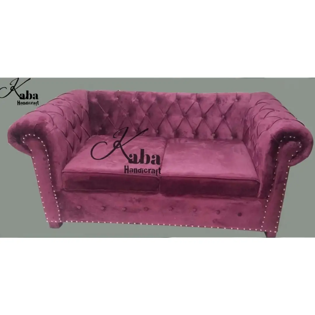 Combining plush texture with regal detailing, this purple velvet tufted loveseat by Kaba Handicraft adds charm and sophistication to compact spaces.